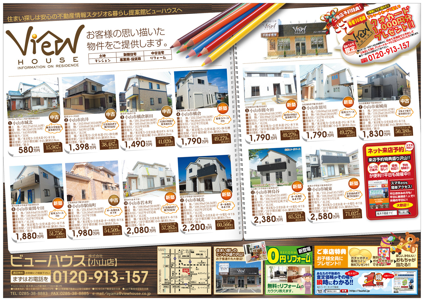 ビューハウスの不動産情報スタジオは9時〜夜8時まで営業しております。