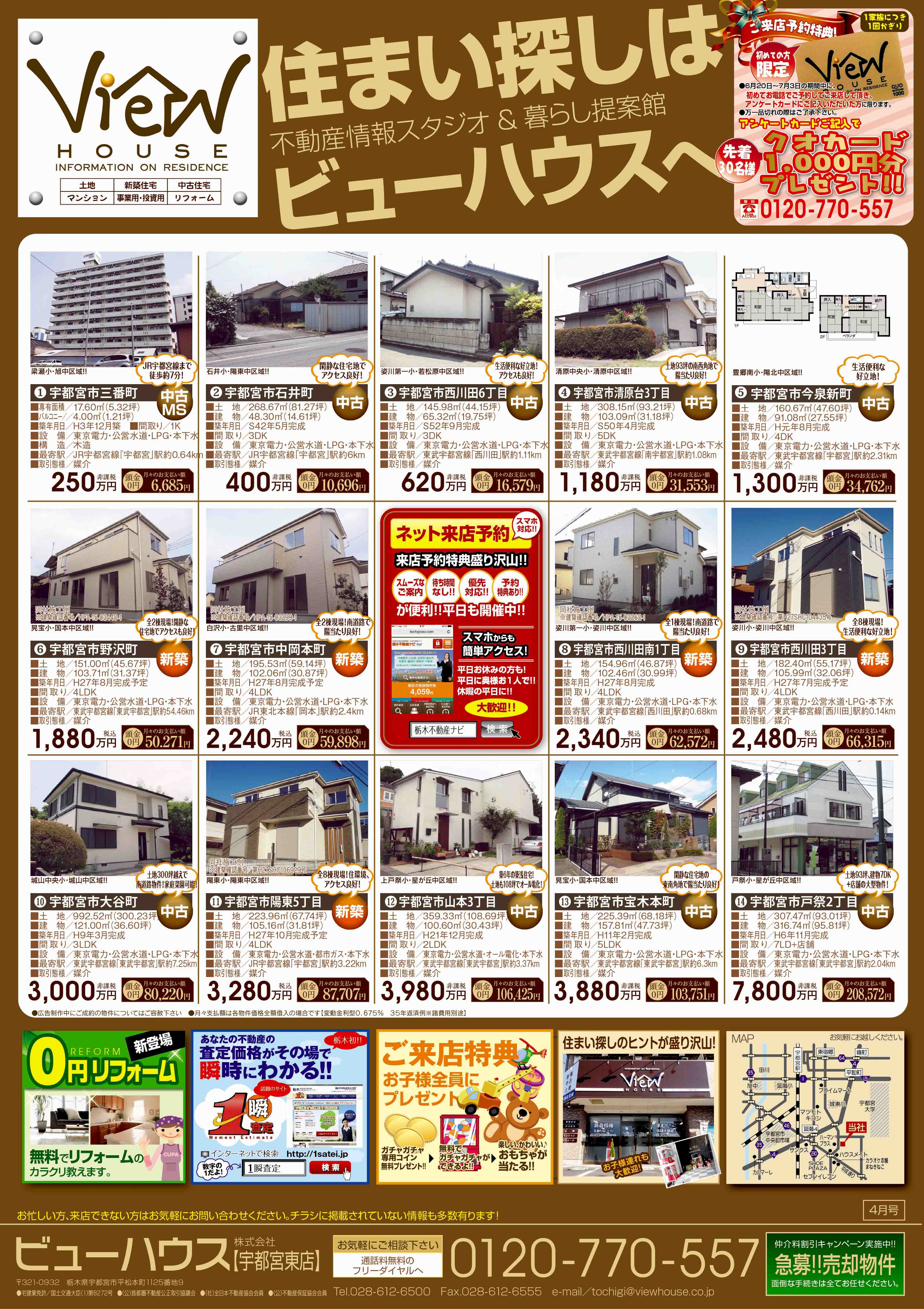 今回のチラシは「注目物件情報」「見学可能物件情報」「その他紹介物件情報」など盛り沢山です。