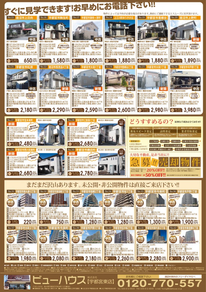 今回の「注目物件情報」「見学可能物件情報」「その他紹介物件情報」なども盛りだくさん。