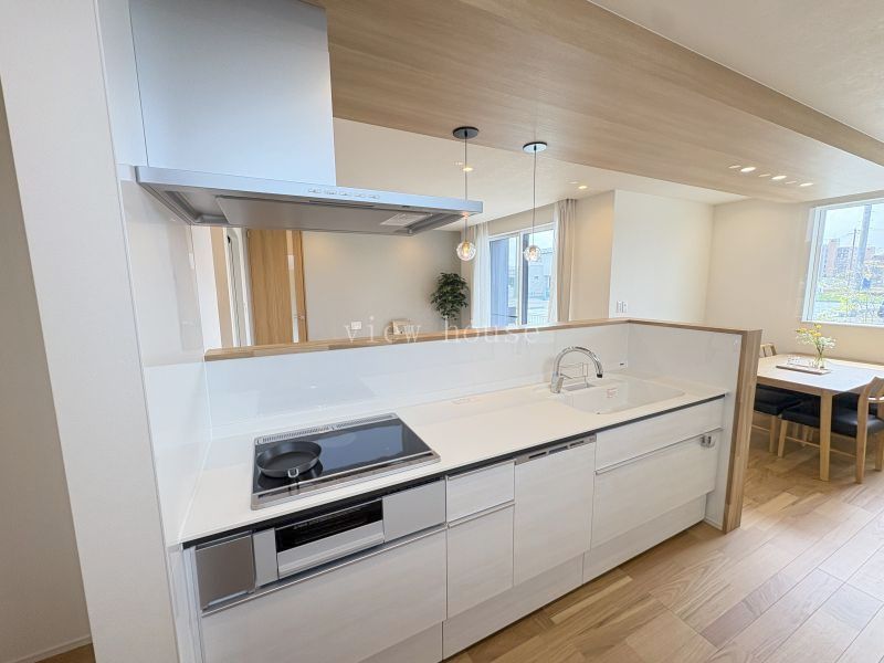 温水洗浄便座、追焚機能、浴室乾燥機、システムキッチン、カウンターキッチン、IHクッキングヒーター、浄水器、食器洗浄乾燥機、ウォークインクローゼット、電気、上水道、下水道、複層ガラス、エアコン、モニタ付インターホン、庭、駐車場2台分 |