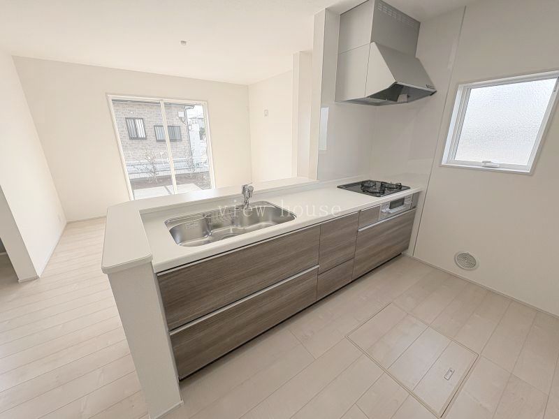 温水洗浄便座、トイレ2ヶ所、追焚機能、浴室乾燥機、システムキッチン、カウンターキッチン、浄水器、ウォークインクローゼット、床下収納、洗髪洗面化粧台、電気、プロパンガス、上水道、下水道、複層ガラス、モニタ付インターホン、ルーフバルコニー、庭、駐車場3台分 |