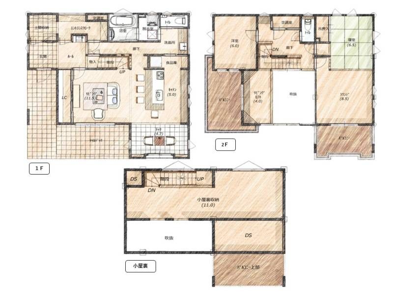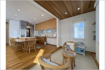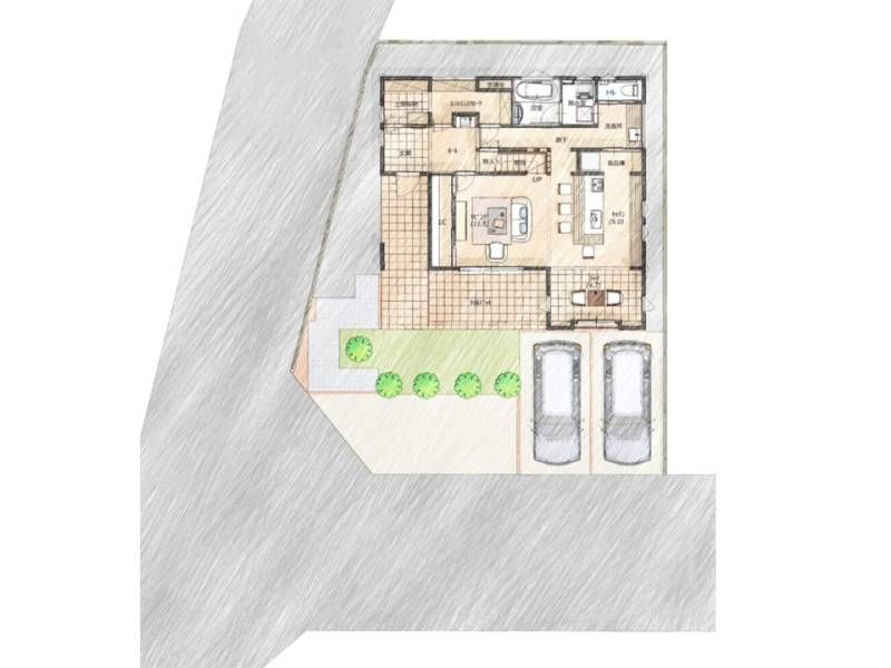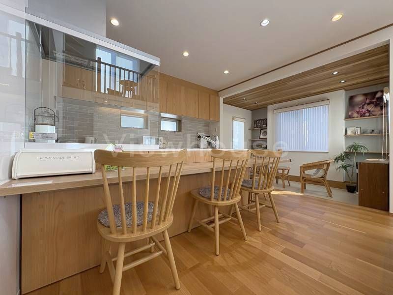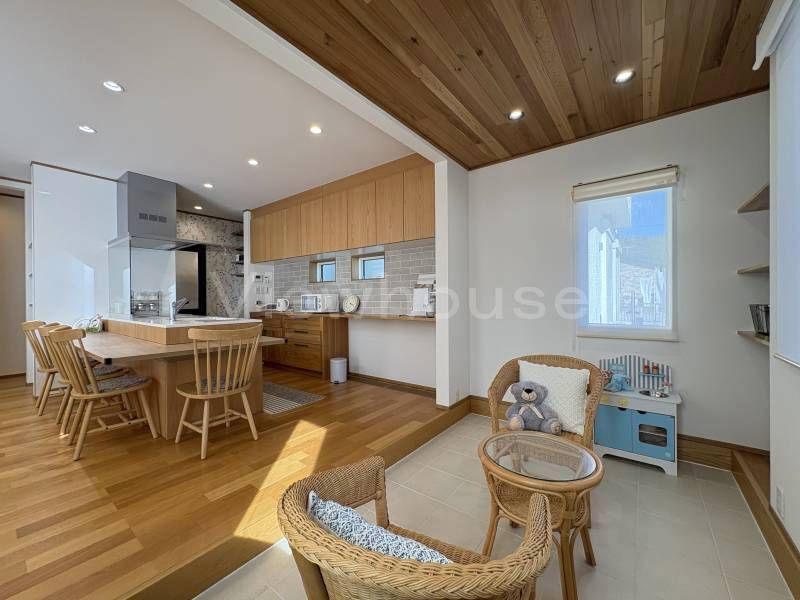温水洗浄便座、トイレ2ヶ所、追焚機能、浴室乾燥機、システムキッチン、カウンターキッチン、IHクッキングヒーター、食器洗浄乾燥機、ウォークインクローゼット、洗髪洗面化粧台、照明器具、電気、上水道、下水道、複層ガラス、モニタ付インターホン、ディンプルキー、ルーフバルコニー、庭、駐車場3台分 |