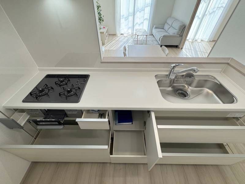 温水洗浄便座、トイレ2ヶ所、追焚機能、浴室乾燥機、システムキッチン、カウンターキッチン、浄水器、床下収納、洗髪洗面化粧台、電気、プロパンガス、上水道、下水道、複層ガラス、モニタ付インターホン、駐車場2台分 |