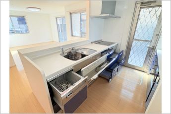 温水洗浄便座、トイレ2ヶ所、追焚機能、浴室乾燥機、システムキッチン、カウンターキッチン、IHクッキングヒーター、食器洗浄乾燥機、ウォークインクローゼット、床下収納、洗髪洗面化粧台、電気、上水道、下水道、モニタ付インターホン、庭、駐車場2台分 |