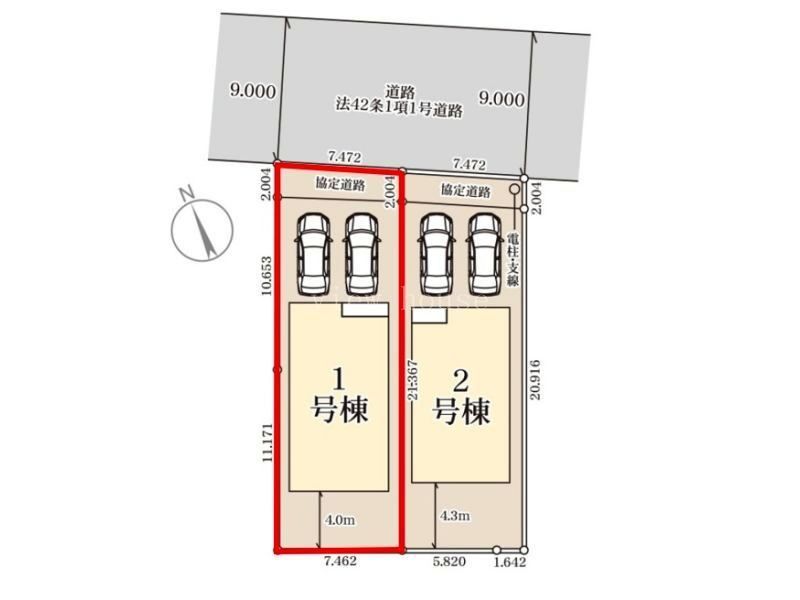北東9m 公道 一方道路 |